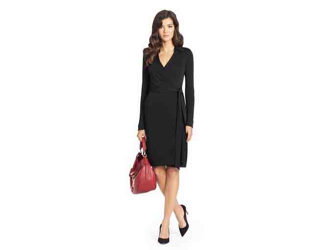 A Diane Von Furstenberg classic can be yours! The New Jeanne Two Matte Jersey wrap dress is a modern take on the timeless classic. It's as fresh, flattering, and chic as ever. Cross over wrap with straight skirt and a self-tie belt. Collar and long sleeves. Unlined seasonless matte jersey. Fit runs small. Falls to above knee with a length of 23 inches from natural waist.