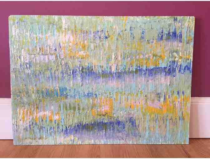 This beautiful painting by Marblehead artist, Misty Wykes, is one-of-a-kind. The gorgeous spring colors are painted on plexiglass and designed to be backlit for a truly dramatic effect. This unique piece is sure to make a statement in any home or office.