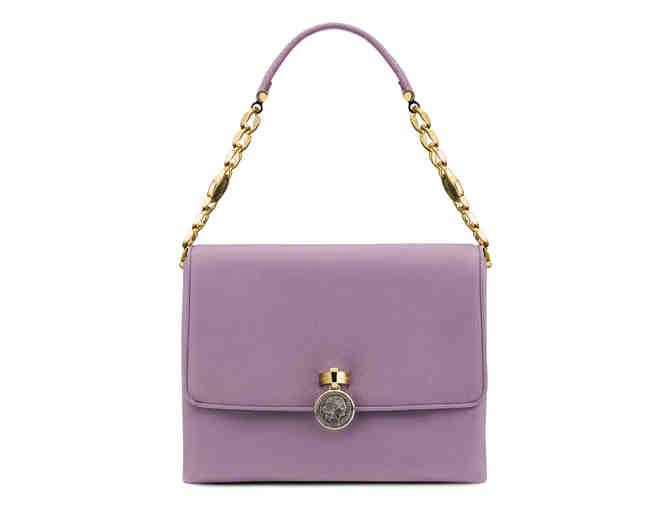 Dazzle your wardrobe with this small three-gusset shoulder carry bag in downy grained calf leather in light purple from Bvlgari.