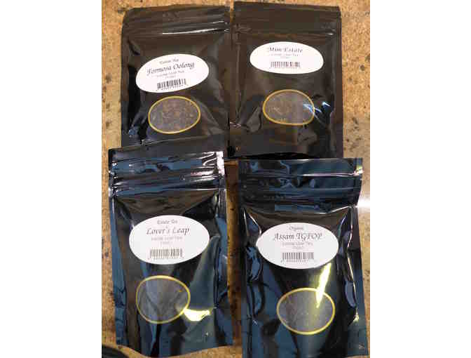 Four 1 oz. bags of loose tea: Organic Assam, Formosa Oolong, Mim Estate, and Lover's Leap.