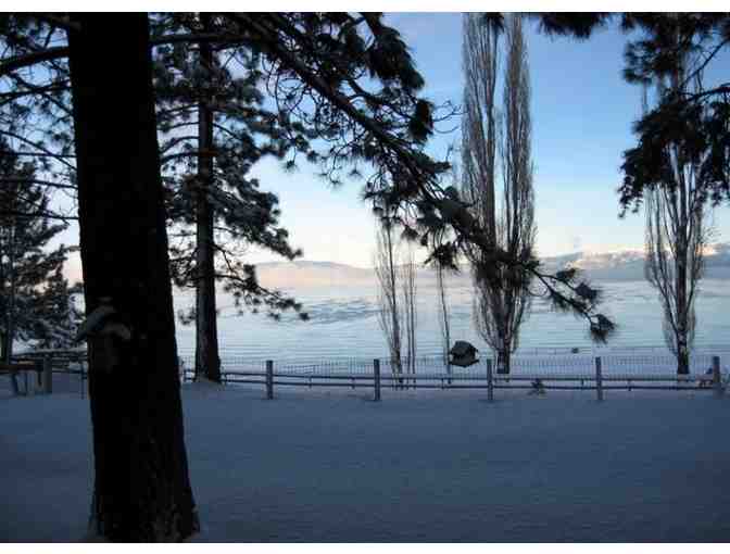 Spend three nights in a lovely four bedroom house on Lake Tahoe. Relax in the hot tub with a gorgeous view of the lake, barbecue on the new deck after a long day of skiing or hiking, and cozy up to a fire next to the granite rock wood burning fireplace.