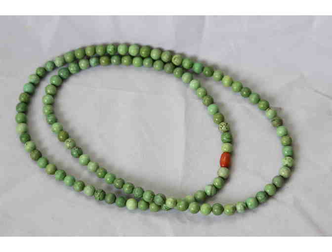 This lovely Green Turquoise Bead Necklace should match many outfits you have this spring. With one coral accent bead on one side it measures 30" long.