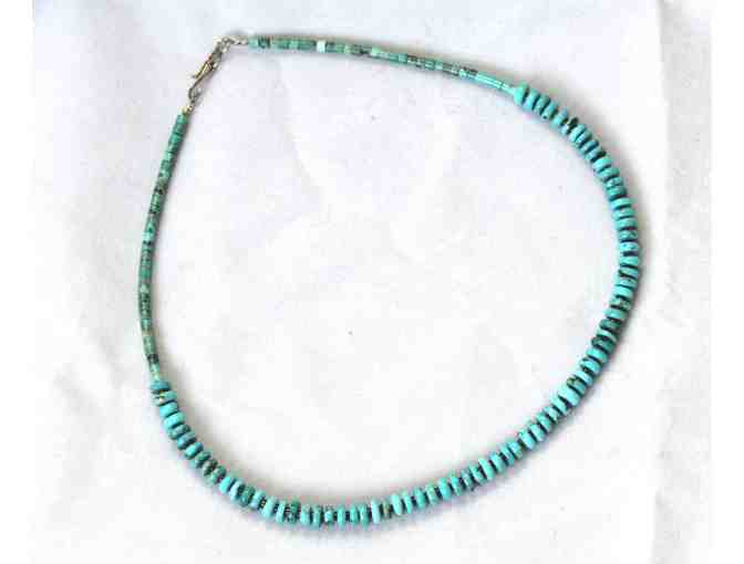 Delicate "Robin's Egg Blue" Turquoise Necklace (choker) measures 16" long with silver hook clasp.
