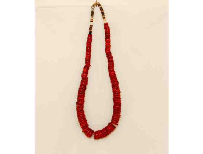 Be amazed by this Red Coral and Pipestone Rondelle Necklace. This standout piece measures 18" long and has a silver lobster claw clasp.
