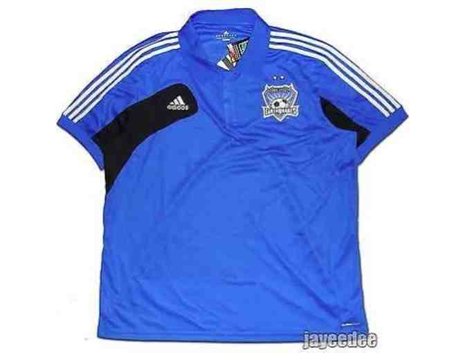 San Jose Earthquakes Polo Shirt (L) and book "The San Jose Earthquakes: A Seismic Soccer Legacy"