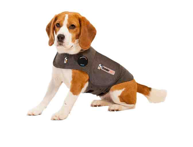 Is your dog a “fraidy-cat" when it comes to thunder, separation, travel, fireworks, and other common fears? Perhaps you've tried tranquilizers and behavior modification to overcome these anxieties? The doggie Thundershirt is a vet-tested remedy for relief of canine anxiety. This stretchy constriction garment reassures pets and relieves such symptoms as panting, shaking, drooling, excessive licking, bolting, or indoor elimination. The Thundershirt is sized for large dogs, about 41-64 pounds. Comes in neutral grey.