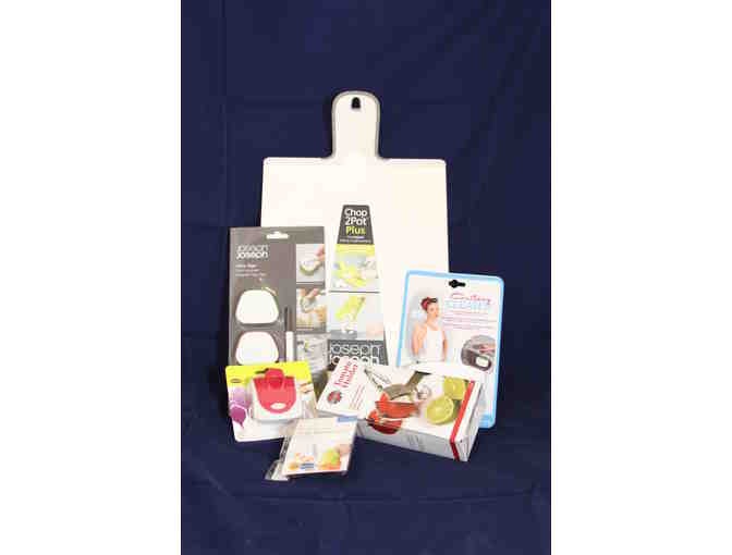 - "Chop 2 Pot" Large Plus Folding 19" Chopping Board by Joseph Joseph. The white cutting board provides a durable, knife-friendly cutting surface for all types of food. The board has non-slip feet and soft-grip handle, so it will not move during the cutting and prep of food. The folding cutting board folds into a chute when the handle is squeezed to guide food into pot. Chopping Board is 19" x 10 ¾ “ x 1/2" and dishwasher safe.