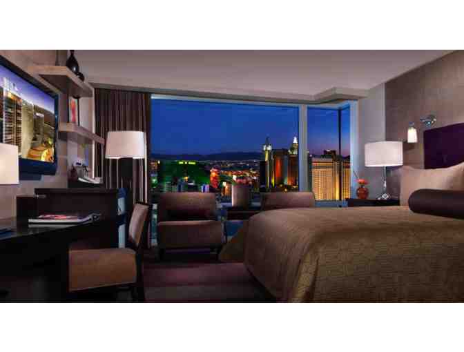 This package includes 2 travel vouchers valued up to $500 each from Delta Airlines, and a 3 night stay in a one-bedroom Aria Suite in the Aria Sky Suites, PLUS $250.00 Food and Beverage credit AND 2 tickets to see Cirque du Soleil Zarkana.
