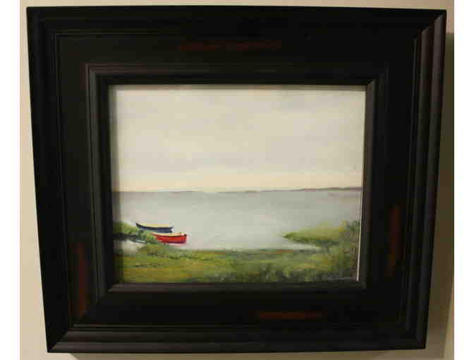 Row boats in a Marsh. Original Pastel painted by Andre Ravenelle