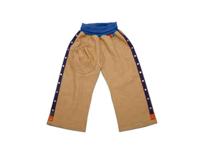 SCRAPPERS toddler pants with adjustable side snap in tan with blue side stripe) (size M/3T)