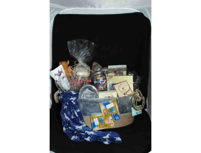If you love horses then this is the item for you! The rope and galvanized beverage tub is filled to the brim with unique and custom horse finds. Items include: