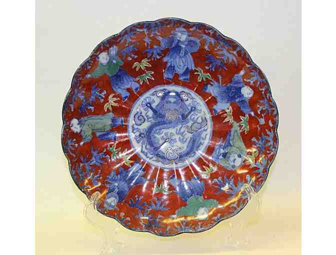 Delightful Japanese Arita Imari Dish with Dragon and Children