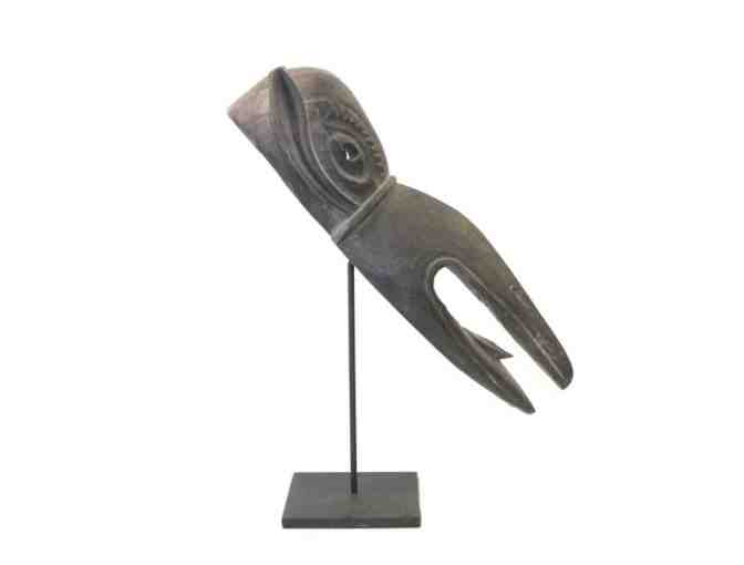 This matchless Garuda Mask is approx. 13" tall by 10" wide on Custom-made stand. This Mask is from Nepal. This sculpture is not like other tourist types found in Nepal