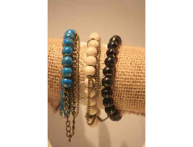 These The Lace Project look alike bracelets are one of a kind. From the charcoal beads to the rustic cream beads to the skull beaded bracelet to give it that spook for this month. These are perfect for everyday wear!