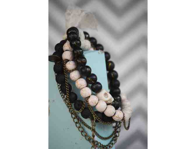 These The Lace Project look alike bracelets are one of a kind. From the charcoal beads to the rustic cream beads to the skull beaded bracelet to give it that spook for this month. These are perfect for everyday wear!