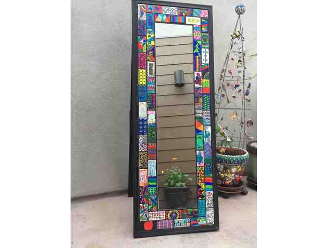 This standing mirror measures 57"x21". Each child in Mr Barakat's class designed two tiles using basic Sharpie Markers and the power of Zen Doodling.