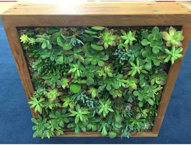 Here's your chance to display a beautiful piece of living art: a vertical garden made with drought-tolerant succulents in a beautiful recycled redwood frame all made lovingly by Clase Rivera.