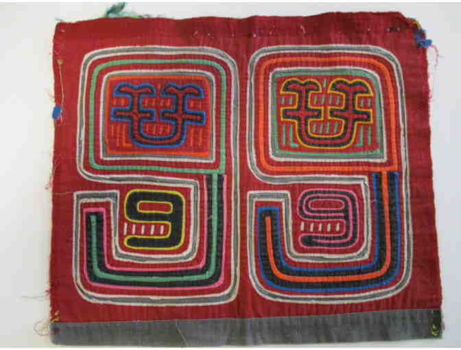 Molas are undoubtedly the most famous art produced in Panama. The Kuna women have been sewing these wearable works of art for years. These embroideries use a technique referred to as reverse applique, where the top fabric is cut and folded back and another fabric placed behind open area and the two are sew together. Many are extremely intricate, some represent flowers or animals, and some are just designs created at the whim of the maker. The Molas offered in this auction are authentic, vintage, and used but very clean.