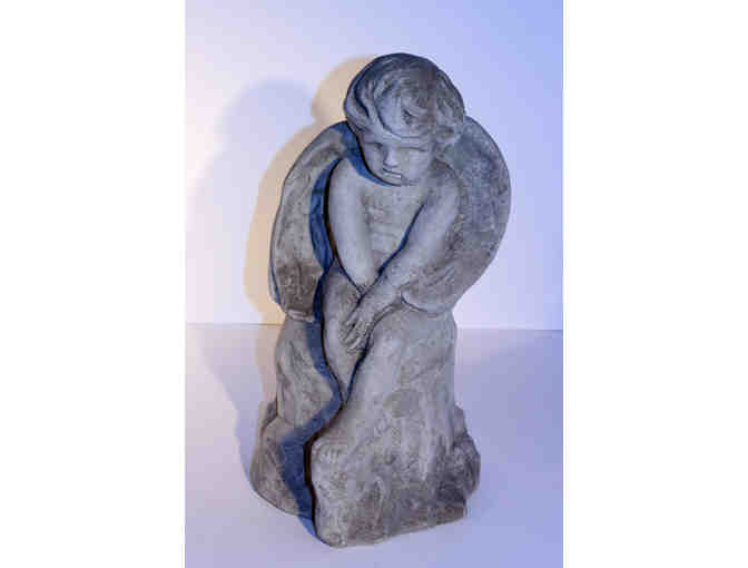 Add this adorable, childish cherub to your natural setting of flowers and shrubs. This cast cement statue is 15" tall and measures 8" wide.