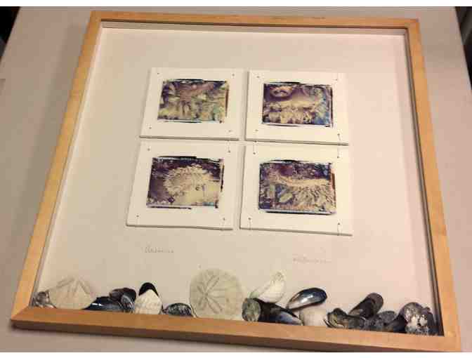 Polaroid transfers printed on hand-built, fired clay slabs featuring shells and beach artifacts. Created by local artist Susan Rattenbury.