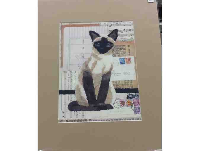 This portrait of the mysterious Siamese Cat is made from torn and cut paper glued to a watercolor background. Own this work of art to honor your best friend!