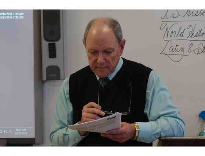 In wine there is truth! Join legendary history teacher, John Cavanaugh, to host a memorable (and educational!) wine tasting event for 20 people at Total Wine & More. Chose a theme based on French, Italian or California wine varieties and enjoy a tasting led by the knowledgeable folks at Total Wine & More. The flights will include tasting options for a number of varieties in your region of choice. Cheers!