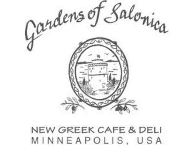 $50 gift certificate to Gardens of Salonica - New Greek Café & Deli. This Northeast restaurant features traditional and modern Greek cuisine. www.gardensofsalonica.com