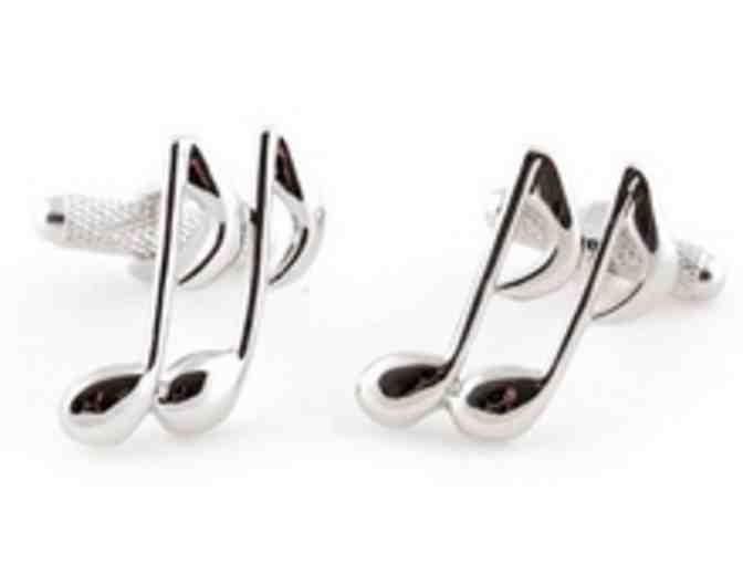 These beautiful cuff links made from rodium silver are a perfect give for the musician in your life. Shiny and quite elegant.
