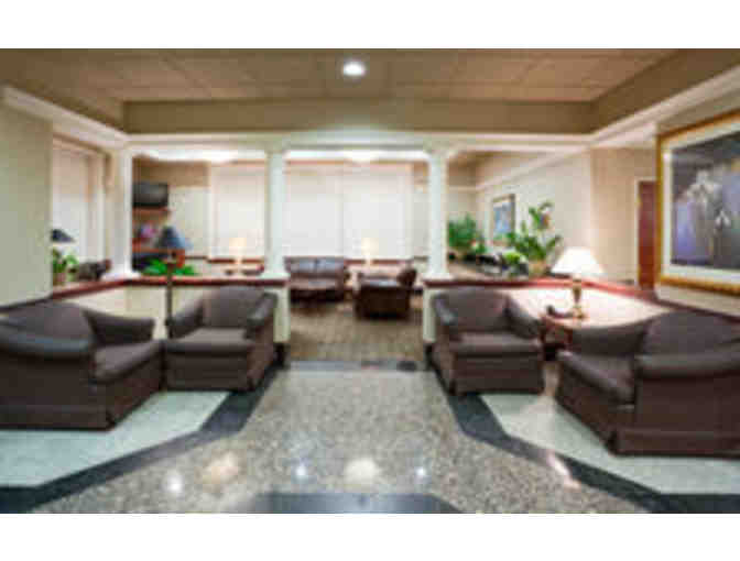 This gift is good for a one stay for two in a luxury whirlpool suite including free complimentary breakfast buffet! Check in is at 3 PM and check out is at 11 AM.