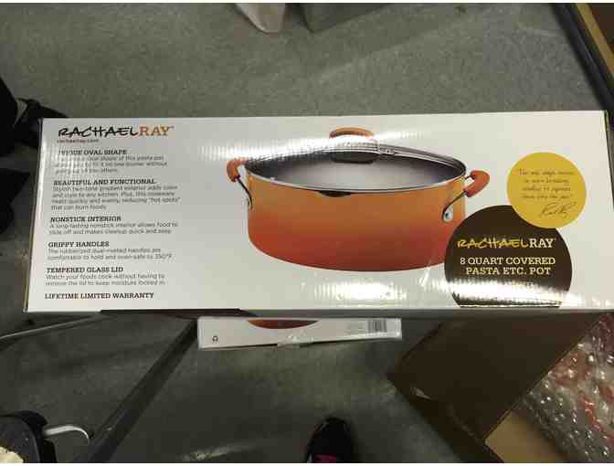 Spice up your kitchen with this festive cookware and accessories set from Rachael Ray. Pasta pot, serving spoons, garbage bowl, and tongs are included.
