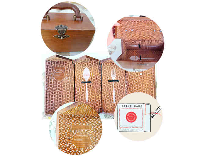 Old school meets funky with this cool wooden lunchbox that opens into a personally portable place setting for your child's lunch. www.littlenamedesign.com