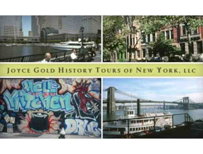 History comes alive on these exceptional walking tours of Manhattan's famous neighborhoods. With recognized expert and noted raconteur Joyce Gold, you'll discover how the city's fascinating past illustrates its vibrant life today. Valid for public tours only. See website for schedule and meeting location. No expiration. www.joycegoldhistorytours.com