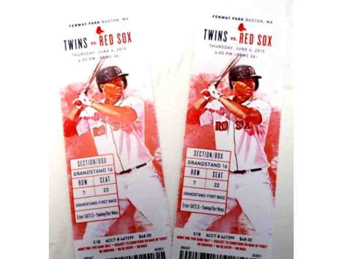 Two tickets to the Red Sox v Minnesota Twins for June 4, 2015 at 4:05pm. These seats are in Grandstand 16 (first base, enter gate D) Row 7 Seats 22&23.