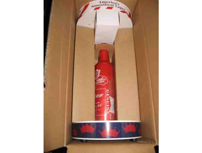 This amazing floating bottle display will get a lot of compliments. It comes with easy to follow, simple instructions. White with red bottle. The bottle has a magnet that functions in a magnetic field.