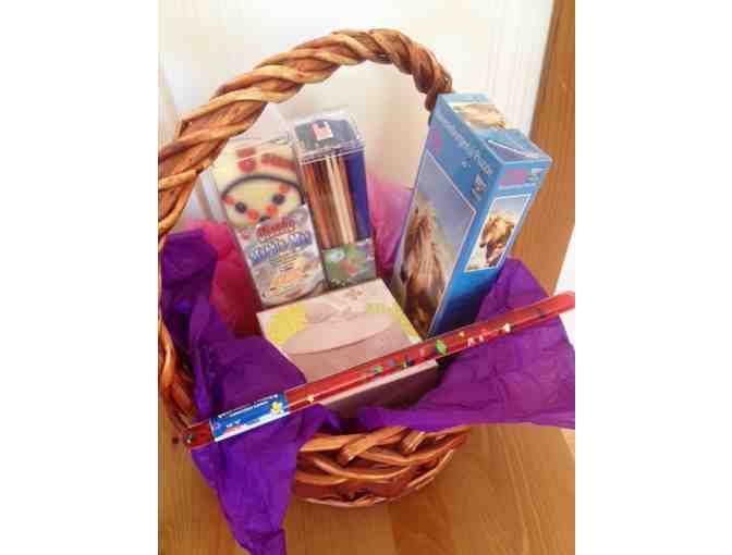 This fun bundle includes a Red Wonder Tube, Horses Ravensburger Puzzle (170 pieces), Authentic American Wooden Pick-Up Sticks, Classic Marble Mat (marbles included!) and a Porcelain Woodland Keepsake Box for treasures.