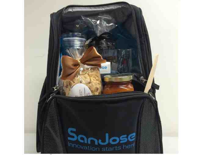 Gift basket filled with nifty San Jose goodies, everything you need for a day-trip and more, including a $50 iTunes card!