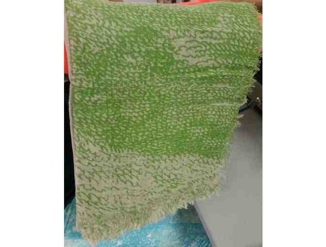 Wrap yourself in this soft 100% wool green and white scarf. Perfect for keeping the cool days at bay. www.megcohendesign.com