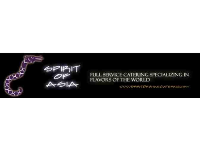 Spirit of Asia Catering will provide Appetizers and Desserts for 20 guests, cooked and served in your home by their professional staff. Price does no include gratuities to service staff. Date of booking subject to availability.