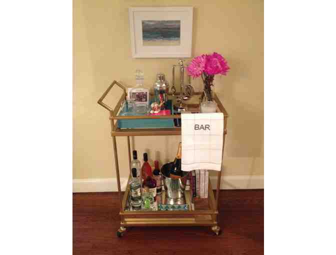 The perfect bar cart is at once a functional vehicle for serving drinks and an attractive, stylish focal point in your home. Assembled by Ellen Marment Interiors, this bar cart has it all! Includes: