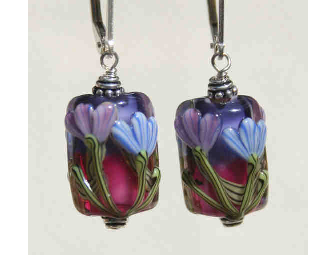 Purple & Blue Floral Lampworked Rectangular Earrings