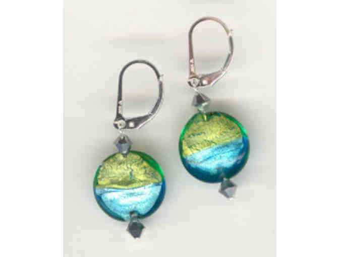 Silver foil lined Venetian glass with Swarovski crystals. The foil brings out the color, even for wearers with dark curls!