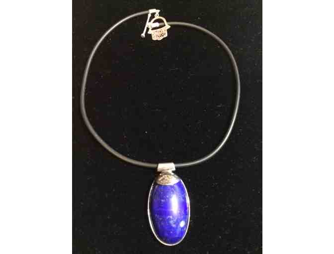 This beautiful, handcrafted necklace features an oval shaped lapis pendant set in 900 silver with a sterling clasp that is gorgeous!