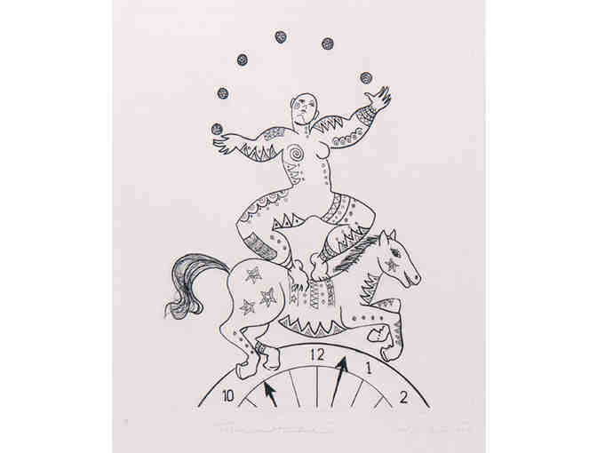 "I loved working with Gregg Blasdel on the 30/30 Project. He is a master printmaker and a wonderful teacher. I created a series of drawings concerning the "Juggler" in the past and felt this subject would be appropriate and fun for the project. The "Juggler", I feel, is a universal theme in our contemporary society...with all of us getting caught up with too much to do in a limited amount of time. Especially being visual artists with lives filled with the richness of family, jobs, relationships etc...and needing maintain the time and distance to continue to create...and as John Hersey describes in My Petition For More Space, the artist is always in a hurry."