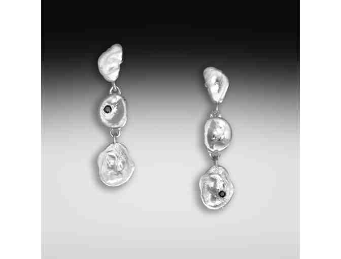 Q Evon Design Sterling Triple watercast earrings with black diamonds