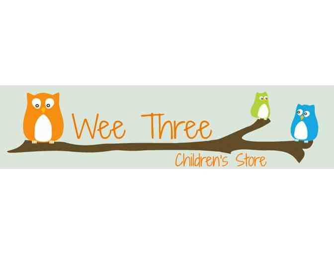 Good towards items in Wee Three Children's Store and We 3 Family Store. Quality goods of natural fiber. Both new and 'slightly experienced'. Our 23rd year in business. A huge selection of shoes, clothing and accessories. Hope to see you soon!