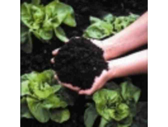 Our compost is made from a rich blend of leaves, wood chips, food scraps, cofee, and melted ice cream. No sewage sludge or chemicals are added. It is fully composted to maturity.