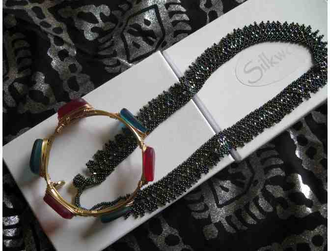 The winning bidder will enjoy these two sea glass stack bracelets (ladies medium), paired with a trendy beaded necklace from Silkwood Boutique in the Pearl.