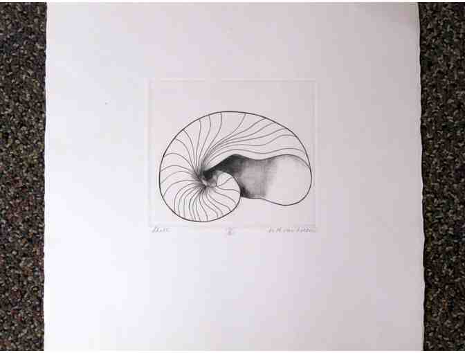 "Shell", etching on handmade paper 5x4, paper measures 11x12