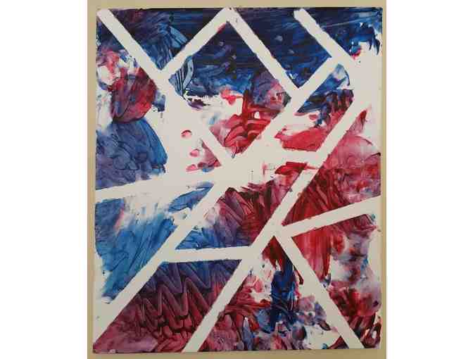 The Sea Pups used blue and red finger paint to make this vibrant canvas with their hands!