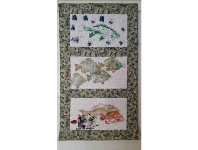 Kris Andrews (Cole's Mom), spent a day in the Eagle Classroom making fish, turtle, and vegetable prints.  Each child had the opportunity to make a print.  Once the prints were dry Kris and her mother, Fran Roller,  took the prints and turned them into beautiful quilted pieces!